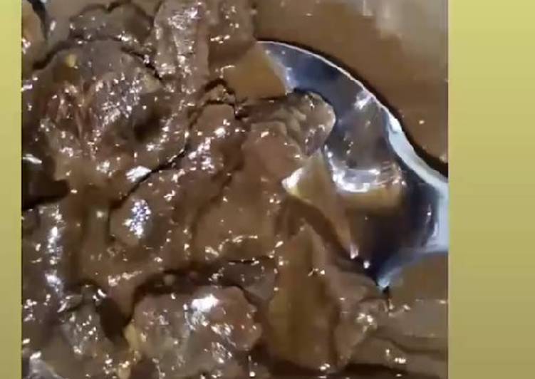 - Lalu nyalakan api.sambil di aduk biar meresap seteha itu unkeb daging sebentar lalu masukan air secukupnya ungkep lagi tunggu sampai matang,.